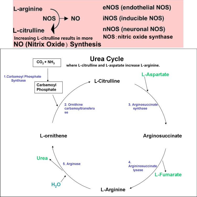 As for the 2nd neurotransmitter Nitric Oxide release in the arterial walls and neurons, take L-Arginine (500 mg) and L-Citrulline 500 mg together in an empty stock. You need both. The following graph tells you why: